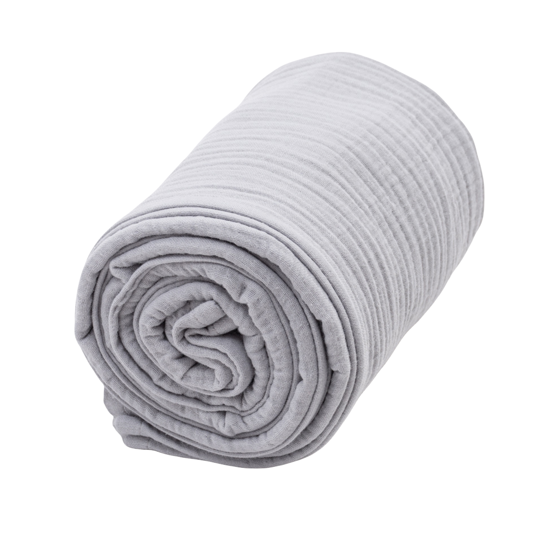 Kocyk muślinowy jest wielofunkcyjny, całoroczny i ze względu na duży rozmiar bardzo uniwersalny. Może posłużyć jako grubszy otulacz, mięciutki kocyk lub cienka kołderka. Bardzo dobrze absorbuje wodę dzięki czemu może być również używany jako ręczniczek.