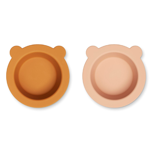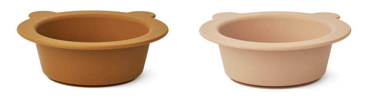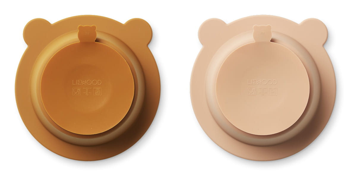 Miseczka silikonowa z przyssawką 2-pak Peony, Mustard/tuscany rose mix, LIEWOOD