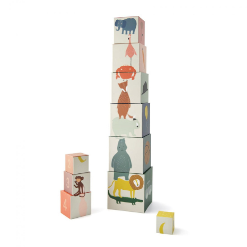 Klocki są wykonane z mocnego kartonu FSC © i atramentu sojowego.