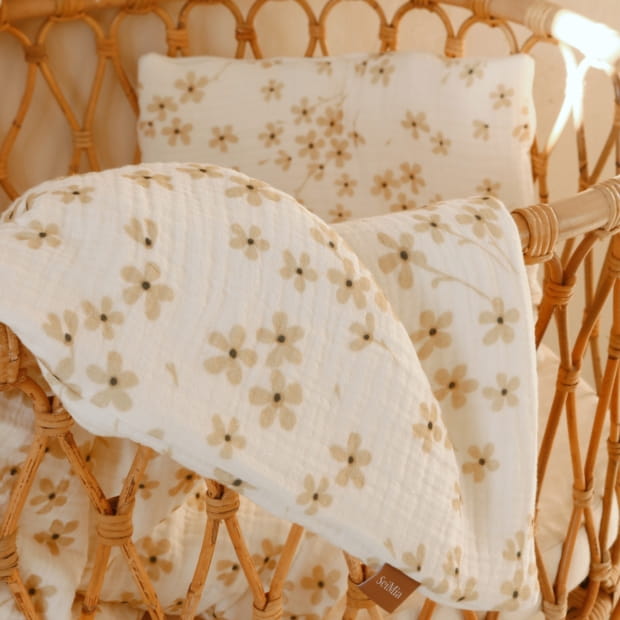 Czterowarstwowa bawełna muślinowa, z jakiej wykonana została pościel niemowlęca z wypełnieniem, jest tkaniną coraz częściej używaną przy produkcji akcesoriów dla niemowląt. Muślin wyróżnia się lekkością i otwartym splotem, dzięki czemu pozwala na swobodne oddychanie skórze dziecka i idealnie sprawdza się do użycia w charakterze pościeli. Włókna tej tkaniny charakteryzują się dobrymi właściwościami termoregulującymi, gwarantują więc przepływ powietrza i chronią maluszka przed przegrzaniem. Niebagatelną zaletą tego materiału jest też jego antyalergiczność, gdyż wykonany został z naturalnych włókien bawełnianych. Ponadto muślin cechuje się odpornością na zabrudzenia, a dodatkowo po każdym praniu pościel Lila staje się jeszcze bardziej miękka.