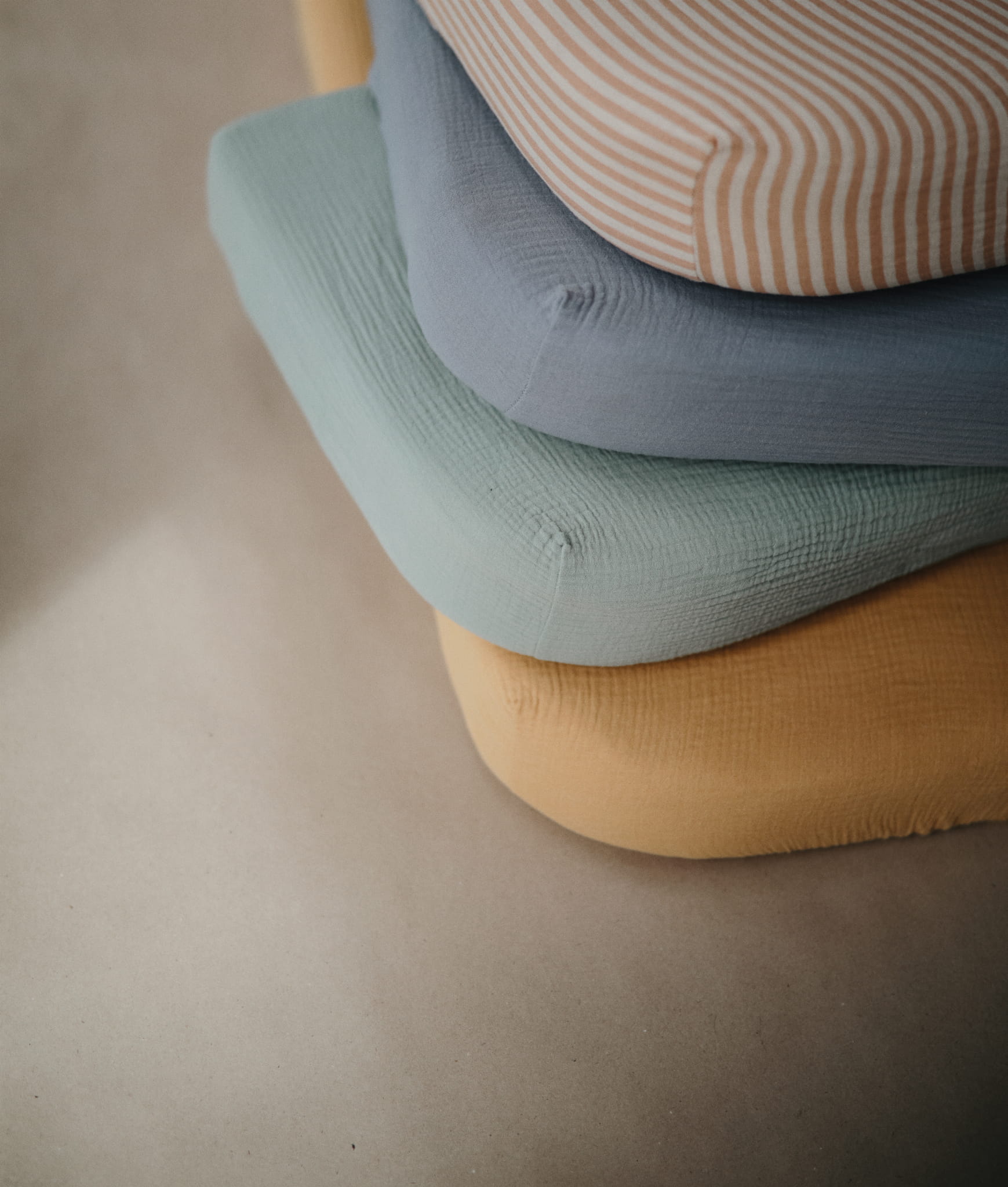 Miękkie prześcieradło muślinowe, zostało uszyte ze 100% bawełny organicznej. Charakteryzuje się delikatnością i miękkością.