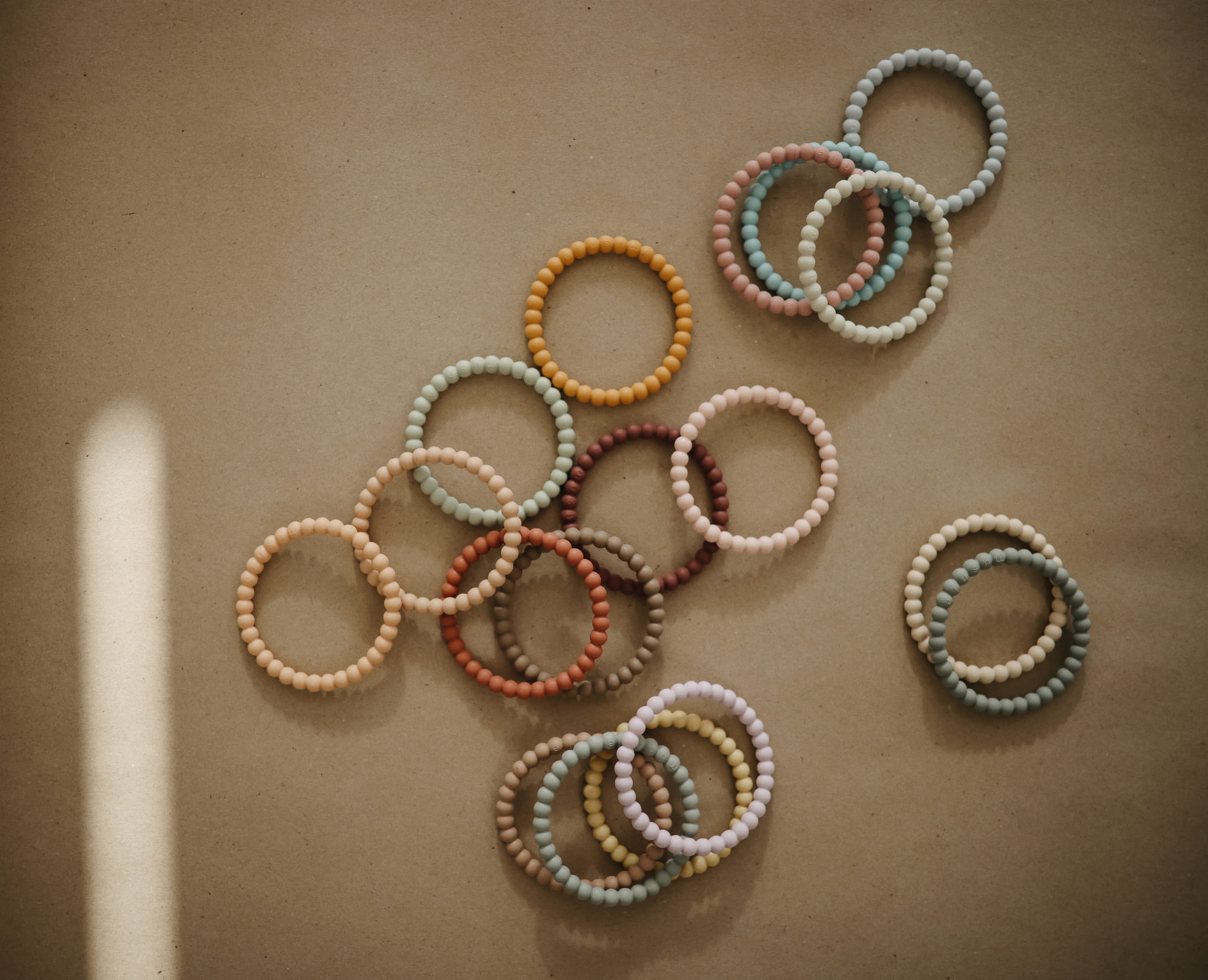 Silikonowy gryzak bransoletka - Licac, Cyan, Soft peach, Mushie