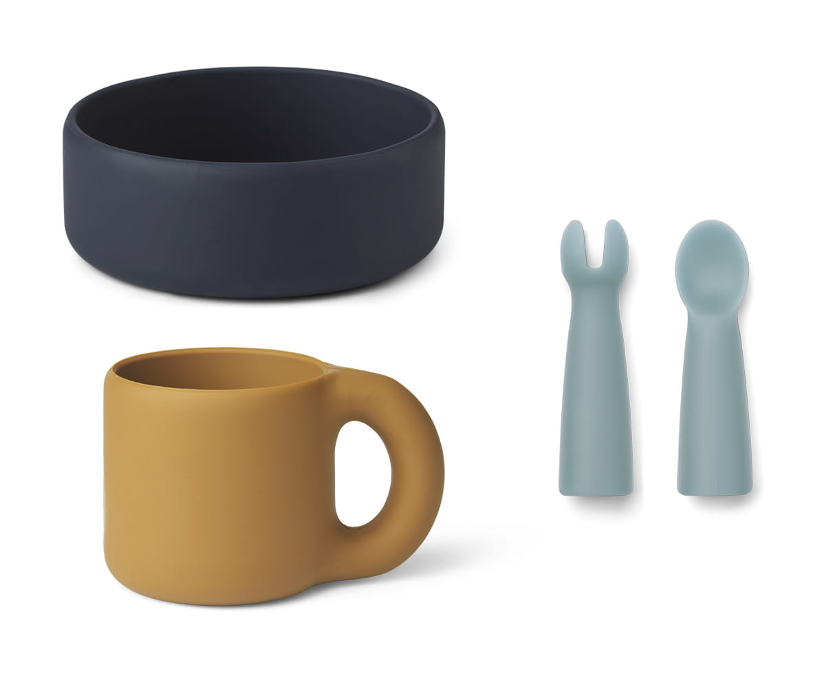 Silikonowy zestaw naczyń dla dzieci, Lise baby set, Sea blue multi mix, LIEWOOD