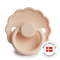 Smoczek Frigg Daisy charakteryzuje się falistą krawędzią która imituje płatki kwiatów nadając mu klasyczny i elegancki wygląd.