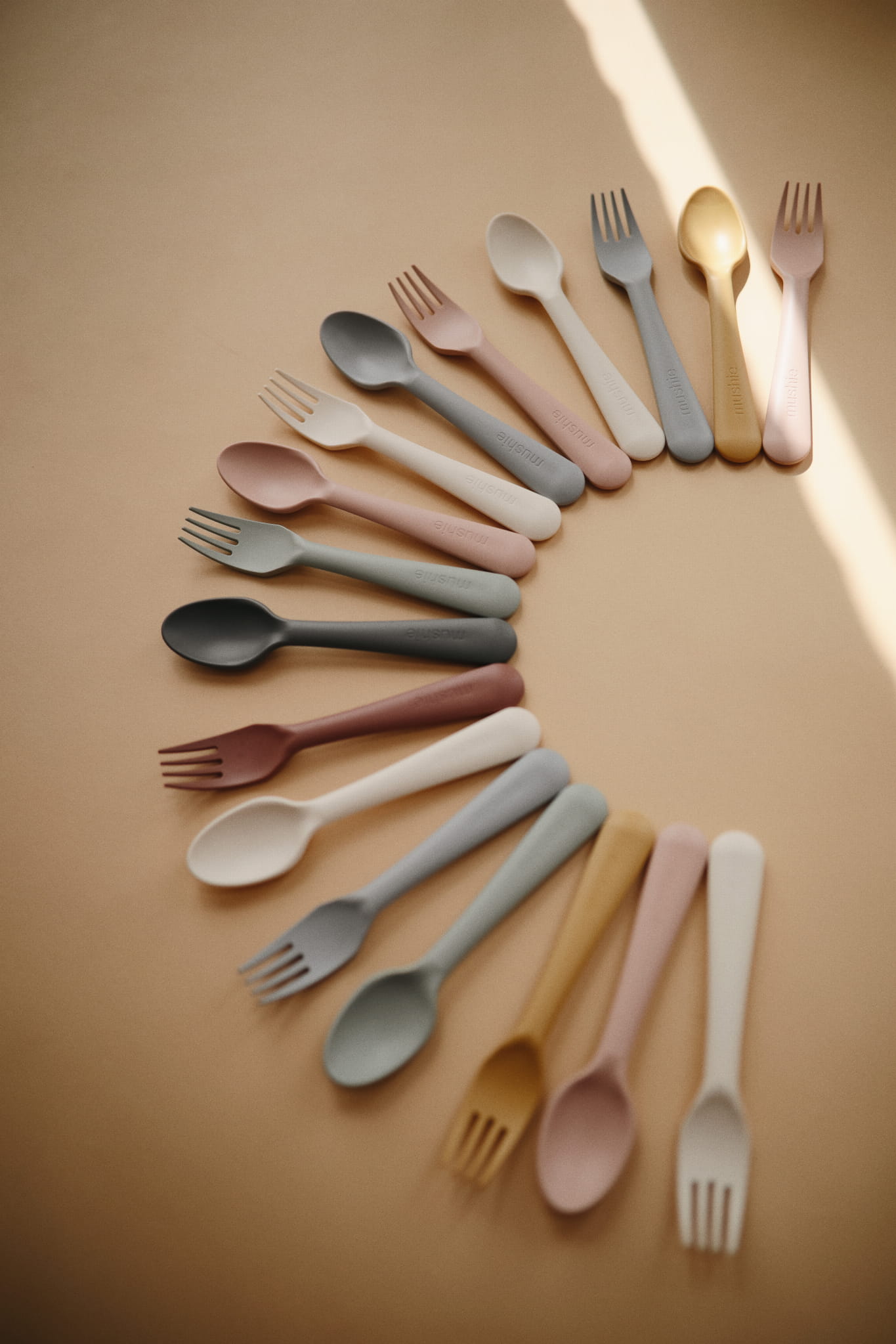 Spraw, aby pierwsze samodzielne posiłki sprawiały dziecku przyjemność i satysfakcję. Zestawy sztućców dostępne są w pięknych naturalnych kolorach.