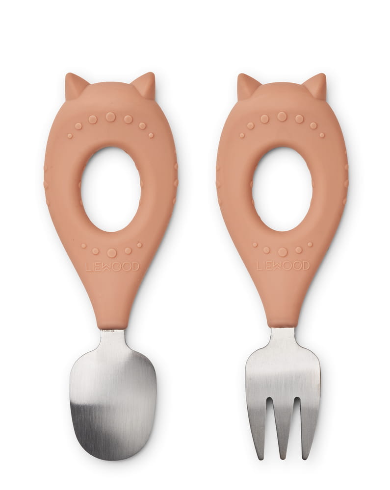 Zestaw sztućców ze stali nierdzewnej dla dzieci od marki LIEWOOD jest idealny, aby pomóc Twojemu dziecku opanować jedzenie. Ten zestaw sztućców sprawdzi się w nauce samodzielnego jedzenia. Uchwyty wykonane są z antypoślizgowego silikonu dzięki czemu sztućce wygodnie leżą w ręce dziecka. Ergonomiczny kształ dopasowany do dłoni dziecka ułatwia nabieranie i wkładanie do buzi pokarmu.